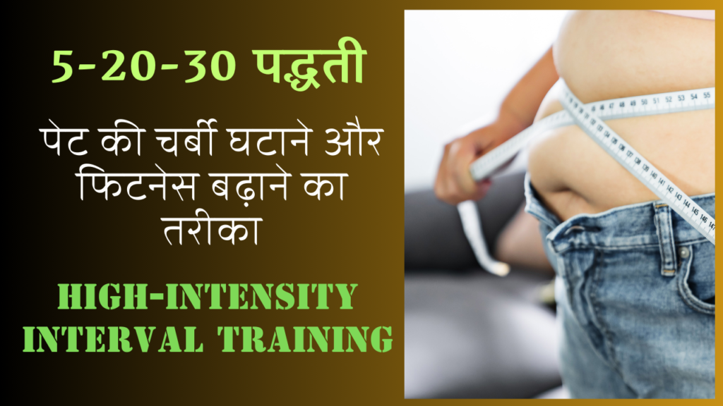 आज के समय में फिट और स्वस्थ रहना हर किसी की प्राथमिकता है। खासकर पेट की चर्बी को घटाना, जो न केवल देखने में समस्या पैदा करती है, बल्कि इससे जुड़ी बीमारियाँ जैसे डायबिटीज़, हृदय रोग, और उच्च रक्तचाप का जोखिम भी बढ़ता है। स्वास्थ्य और फिटनेस के क्षेत्र में नई-नई विधियों का आविष्कार हो रहा है , ऐसे में 5-20-30 पद्धति यह उच्च-तीव्रता अंतराल प्रशिक्षण HIIT (High-Intensity Interval Training) एक बेहतरीन तरीका है, जो न केवल सरल है, बल्कि बेहद प्रभावी भी है। इसे विशेष रूप से पेट की चर्बी को कम करने और समग्र फिटनेस को बढ़ाने के लिए डिज़ाइन किया गया है। इस ब्लॉग में हम इस पद्धति को विस्तार से समझेंगे और इसे अपनी दिनचर्या में शामिल करने के फायदे जानेंगे।